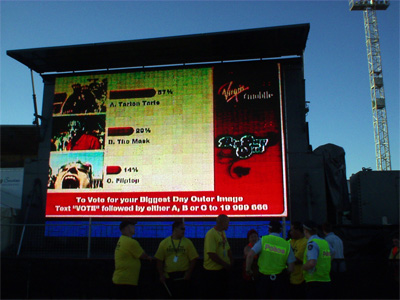 比如,某些公司可能會使用上面所述的調(diào)節(jié)型文本信息收發(fā)方式來顯示滾動的帶狀區(qū)內(nèi)容,但也會在文本顯示的過程中覆蓋某張由手機用戶拍攝的圖象。這張圖片一般可能是該用戶的貓或狗,然后加上一些有趣的元素。在戶外活動中,我們可以用拍到的圖象來加強文本信息。比如,活動現(xiàn)場可以就屏幕上的一張照片提問“他夠不夠火辣?”。這樣的問答結(jié)果隨后就可以被實時廣播到屏幕上。