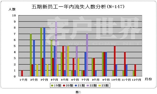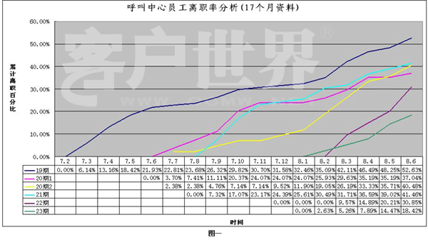 員工流失率控制,在行業(yè)內(nèi)困惑著不少中心領(lǐng)導。業(yè)內(nèi)專家集中精力,采取各種措施,試圖減少流失率對服務(wù)中心成本的影響。為此,本項目組對某客戶服務(wù)中心員工5期新員工進行了17個月的數(shù)據(jù)采集、分析,涉及近200名離職員工的信息分析。從時間變量角度,對新員工內(nèi)心體驗進行闡述,并分析此考察期間,員工負性情緒、工作事件、經(jīng)歷體驗與促使員工離職行為之間的關(guān)系,建立針對問題的性質(zhì),制定干預策略。本設(shè)想建立在針對員工培訓體系進行優(yōu)化,減少已發(fā)現(xiàn)的新員工離職原因?qū)θw員工的影響,從而實際的減少員工流失、工作低績效現(xiàn)象,達到提高組織績效的目的。