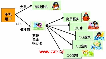 三、增值服務(wù)類商業(yè)模式。它承襲固定互聯(lián)網(wǎng)服務(wù)的商業(yè)模式,以終端用戶為付費(fèi)對(duì)象,通過移動(dòng)互聯(lián)網(wǎng)服務(wù)所衍生的增值服務(wù)進(jìn)行收費(fèi)。以手機(jī)騰訊為例,手機(jī)QQ服務(wù)免費(fèi),但對(duì)虛擬物品銷售,包括QQ秀、寵物等進(jìn)行收費(fèi),并已成為主要收入來源,它是互聯(lián)網(wǎng)QQ業(yè)務(wù)盈利模式的順延和擴(kuò)展。