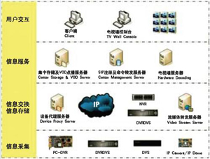 信息采集指將系統(tǒng)需要的信息源通過采集設(shè)備進(jìn)入信息交換系統(tǒng),載體是IP 網(wǎng)絡(luò)。采集的信息包括視頻、音頻、報警、狀態(tài)及其它類型的信息,采集的設(shè)備包括能直接接入IP
