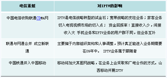 3)中國電信發(fā)展IPTV的強(qiáng)勢推進(jìn)和機(jī)遇