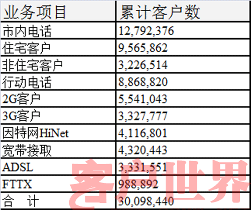 時至今日,臺灣中華電信在臺灣全區(qū)共有15個Call Center(含3個查號中心),共有3,000多位客服人員,服務(wù)本公司固網(wǎng)、行動、數(shù)據(jù)、寬帶…等客戶約3,000余萬戶。服務(wù)內(nèi)容包括咨詢、訂單、帳務(wù)、障礙、營銷等作業(yè),每月平均受理及處理的話務(wù)量約1,230萬余次。