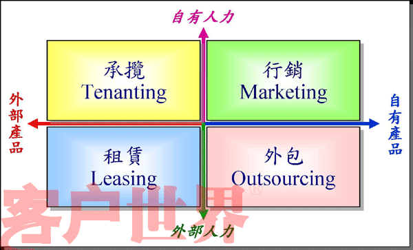 Matrix)就是由內(nèi)、外部的產(chǎn)品與人力所組合成的四個營運(yùn)領(lǐng)域(如圖五)。