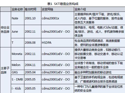 SKT的增值業(yè)務(wù)主要由三大綜合業(yè)務(wù)品牌和若干子品牌構(gòu)成(見(jiàn)表1),其中娛樂(lè)類(lèi)業(yè)務(wù)受到多數(shù)人的喜愛(ài),比如Nate、melon、GXG等。