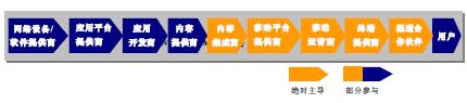 和記電訊是香港最大的流動網(wǎng)絡運營商。2004年1月,和記電訊率先在香港推出世界級的3G服務。其目標就是成為最佳的3G移動通信多媒體通信運營商。和記電訊在產業(yè)鏈上承擔的角色如圖3所示。