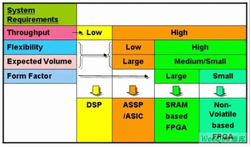 但是ASIC和ASSP帶來了高昂的非重復性工程費用成本,除非批量非常大。如果只有一小部分用戶使用特殊的功能模塊,那么FPGA解決方案可提供更好的回報。對于ASIC和ASSP,這些器件有限的功能和固有的不靈活性,不允許在設計完成后根據(jù)市場的要求改進或添加新的功能。FPGA卻能提供廣泛的功能和高度的靈活性。