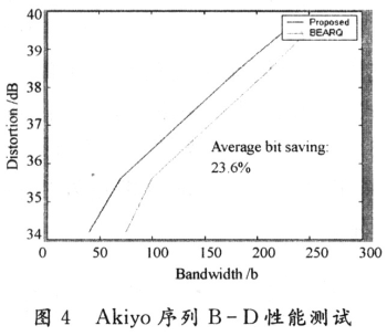 針對上節(jié)提出的重發(fā)機(jī)制和算法原理,為了評估方便,不失一般性,在實驗中假設(shè)最大重傳次數(shù)為1。從上文可知,允許重傳次數(shù)越多,則對同樣的終端接收失真而言,BEARQ機(jī)制從B-D性能來看也就會越差,而這里設(shè)計的重發(fā)機(jī)制相對于BEARQ的B-D性能提高也就越明顯。