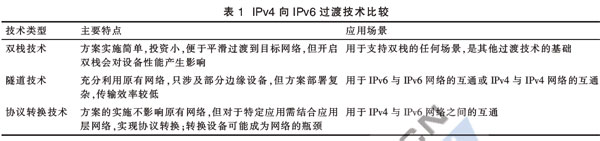 IPv6協(xié)議并非是對IPv4協(xié)議的簡單升級,報文頭部特征和地址分配機制等方面的不同使得IPv6協(xié)議缺乏對IPv4協(xié)議的后向兼容性。IPv6的引入和應用是一個系統(tǒng)工程,不僅涉及終端升級、網(wǎng)絡改造、平臺遷移和用戶認知的提升,還涉及技術標準與IP地址資源分配管理等一系列內(nèi)容,因此IPv6的引入不可能一蹴而就,IPv4與IPv6將長期共存,IPv6的引入過程將是IPv4向IPv6平穩(wěn)過渡的過程。