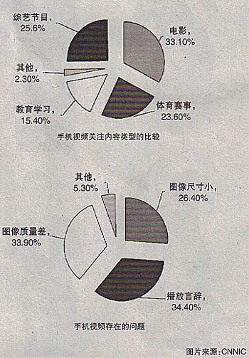 終端是影響手機視頻業(yè)務發(fā)展的重要因素之一,手機視頻業(yè)務的發(fā)展對終端提出了更高的要求。手機視頻的實現(xiàn)方式可以分為兩種,一種是本地視頻業(yè)務,一種是在線視頻業(yè)務。本地視頻業(yè)務指的是通過手機將視頻內容下載到手機上觀看,而在線視頻業(yè)務則是通過手機連接移動互聯(lián)網(wǎng),借助視頻播放器實時在線觀看視頻內容。這兩種方式都決定了終端將成為影響手機視頻業(yè)務體驗的重要因素,尤其是在線視頻的方式,手機的處理能力將直接影響到視頻的播放速度,同時,手機的屏幕大小和屏幕分辨率也將影響用戶的觀看體驗。