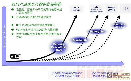 Wi-Fi正在吹響全面取代其他無(wú)線通信協(xié)議的戰(zhàn)斗號(hào)角,而Intel無(wú)疑則是這場(chǎng)戰(zhàn)役的大后方。2006年9月從Intel分拆出來(lái)的初創(chuàng)公司GainSpan聲稱,他們已經(jīng)擁有了在無(wú)線傳感器網(wǎng)絡(luò)(WSN)領(lǐng)域戰(zhàn)勝Zigbee的技術(shù)方案。GainSpan總裁兼首席執(zhí)行官Vijay Parmar不久前在上海接受采訪時(shí)表示,采用這家公司的WSN解決方案,不僅能夠享受到成熟的Wi-Fi技術(shù)帶來(lái)的各種好處,還能確保在單節(jié)AA電池下維持長(zhǎng)達(dá)5~10年的電池壽命。