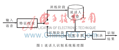 說(shuō)話人識(shí)別又被稱為話者識(shí)別,是指通過(guò)對(duì)說(shuō)話人語(yǔ)音信號(hào)的分析處理,自動(dòng)確認(rèn)說(shuō)話人是否在所記錄的話者集合中,以及進(jìn)一步確認(rèn)說(shuō)話人的身份。說(shuō)話人識(shí)別的基本原理如圖1所示。