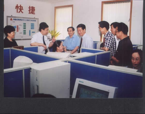 二〇〇一年五月二十六日9:10—10:40 中央書記處書記、中宣部部長丁關(guān)根在省委副書記吳愛英、省宣傳部長王秉聲、市委書記張惠來、市委副書記張旭升等陪同下一行二十人視察96111熱線。