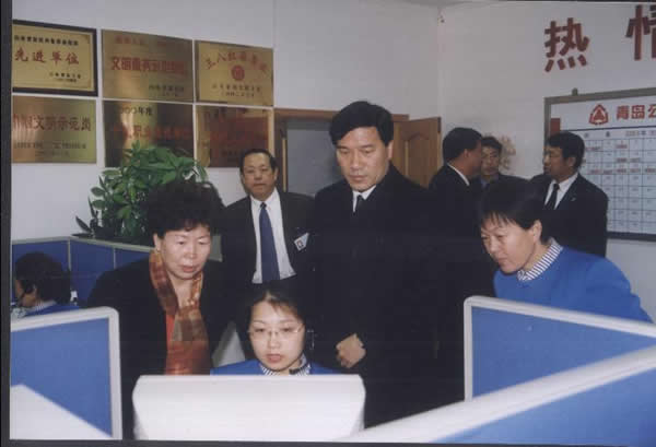 二〇〇二年三月六日 山東省副省長趙克志等領(lǐng)導(dǎo)在市委副書記張旭升等陪同下一行十人來熱線視察工作。