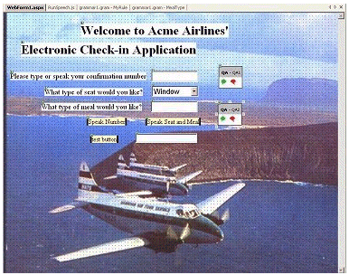 .NET Speech SDK是使用融語音及圖像等為一體的界面來構(gòu)筑Web應(yīng)用的開發(fā)環(huán)境。與該公司的開發(fā)工具--“Visual Studio .NET”配合使用。據(jù)微軟稱,其特點是即使開發(fā)人員不具備語音界面方面的特殊知識也能使用。比如,上圖就是正在使用.NET Speech SDK開發(fā)的可進行語音及鍵盤輸入的窗口。文字輸入框右邊的小框是使用SALT(語音應(yīng)用語言標簽)語音相關(guān)命令的標記。目前,在支持語音功能的Web應(yīng)用的開發(fā)中,必須使用面向圖形和面向語音的兩種開發(fā)工具!拔覀兊哪康氖翘峁┮粋使用一種工具就能開發(fā)包括圖形和語音的多種界面的環(huán)境”(該公司負責(zé).NET Speech技術(shù)的市場營銷經(jīng)理James Mastan)。