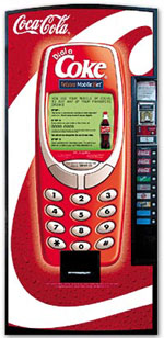 在澳大利亞,澳大利亞電訊和可口可樂公司聯(lián)合發(fā)布了一項新業(yè)務的試運營:“撥打可口可樂”。這項新業(yè)務使該公司的后付費移動電話客戶可以使用他們的GSM移動電話,在可口可樂售貨機上購買他們喜愛的飲料。這次試驗在悉尼中央車站的17臺可口可樂售貨機上進行。