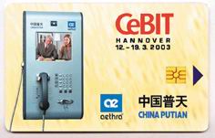 天津電話設(shè)備廠為參展2003年德國漢諾威展覽會精心制作的IC卡片