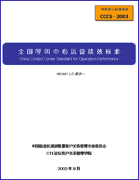 《全國呼叫中心運(yùn)營績效標(biāo)準(zhǔn)》(China Contact Center Standard for Operation Performance,簡(jiǎn)稱"CCCS-OP-2003標(biāo)準(zhǔn)"),是由CTI論壇客戶關(guān)系管理學(xué)院負(fù)責(zé)策劃和起草,并聯(lián)合該領(lǐng)域內(nèi)具有代表性的客戶服務(wù)提供商、運(yùn)營商一起同心協(xié)力,站在行業(yè)發(fā)展的最前沿,共同創(chuàng)建的客戶服務(wù)及呼叫中心行業(yè)運(yùn)營標(biāo)準(zhǔn),并最終由信息產(chǎn)業(yè)部中國信息化推進(jìn)聯(lián)盟客戶關(guān)系管理專業(yè)委員會(huì)發(fā)布實(shí)施的行業(yè)標(biāo)準(zhǔn)。該標(biāo)準(zhǔn)填補(bǔ)了國內(nèi)在該領(lǐng)域的一項(xiàng)空白,并將帶動(dòng)整個(gè)行業(yè)不斷地向前發(fā)展。