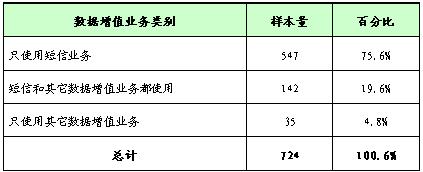 附表 手機用戶不同數(shù)據(jù)增值業(yè)務使用情況