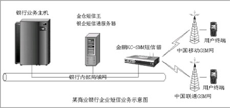 2004年7月,某地級市商業(yè)銀行采用了金鵬KC-SMM短信貓和“金倉短信王銀企短信通解決方案”軟件搭建了企業(yè)級的短信服務體系。鑒于業(yè)務量并非很大,所以盡管整個商業(yè)銀行有近三百個辦公網(wǎng)點,在設備上該商業(yè)銀行仍然只采用一套軟硬產(chǎn)品!敖瘗i的短信平臺產(chǎn)品目前在北方鋪開的時間并不長,所以在價格上有一定的傾斜,我們商業(yè)銀行購買的產(chǎn)品,價格比較便宜!痹撋虡I(yè)銀行信息部某負責人說。