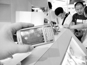 該名管理人員向記者表示,由于深圳還沒有信號(hào),因此在會(huì)場(chǎng)內(nèi)的手機(jī)電視依賴放置在展臺(tái)內(nèi)一角的發(fā)射終端獲取信號(hào)。“目前廣州已經(jīng)有信號(hào),但信號(hào)將逐步覆蓋至全省!彼d奮地向記者表示。據(jù)了解,該電視手機(jī)市場(chǎng)售價(jià)可能在2000元左右。