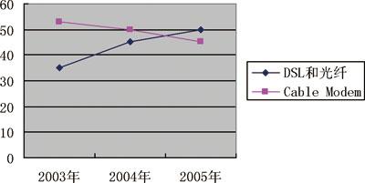 市場(chǎng)研究公司ParksAssociates最新發(fā)布的研究報(bào)告稱(chēng),2007年美國(guó)住宅用戶(hù)的寬帶網(wǎng)普及率將超過(guò)50%,美國(guó)住宅寬帶網(wǎng)用戶(hù)將超過(guò)6000萬(wàn),這些用戶(hù)都可以通過(guò)寬帶接入享受三種業(yè)務(wù)捆綁服務(wù)。由于電信公司的寬帶接入技術(shù)占優(yōu)勢(shì),因而在三種業(yè)務(wù)捆綁服務(wù)方面,電信公司占有競(jìng)爭(zhēng)優(yōu)勢(shì)。所以,凡是在兩家有競(jìng)爭(zhēng)的地方,有線(xiàn)電視公司都無(wú)例外地降低了價(jià)格,并失去了相當(dāng)一部分傳統(tǒng)市場(chǎng)。