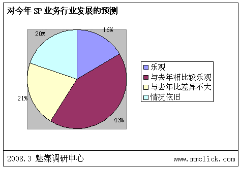 魅媒無線調(diào)研中心認為:由于前期政府以及運營商對SP行業(yè)的相關整頓效果明顯,相關的制度、措施以及管理系統(tǒng)上線后,SP違規(guī)的風險已經(jīng)越來越大,行業(yè)自律狀態(tài)較之前有明顯的改善。但是由于部分的制度明顯存在矯枉過正現(xiàn)象,不少的措施嚴重影響到用戶的體驗,而且對SP管理一直出于消極的狀態(tài),需要不斷調(diào)整。