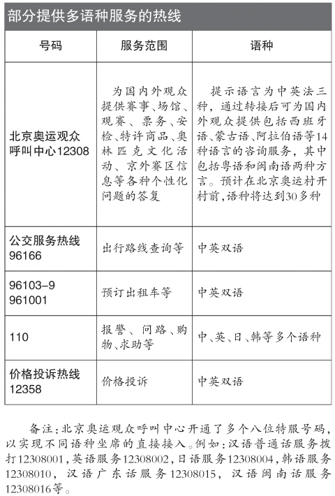 奧運觀眾可享14種語言服務(wù) 撥12308可查信息