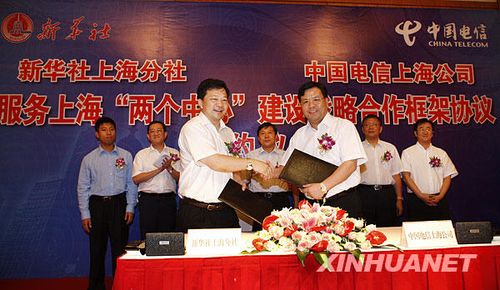 根據(jù)新華社上海分社與中國電信上海公司簽署的信息化戰(zhàn)略合作協(xié)議,雙方將共同致力于為上!皟蓚中心”建設開展合作,向上海的機構用戶和個人用戶提供高端信息服務。