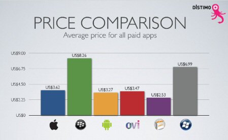 圖:為蘋果和Android等各種應(yīng)用的平均售價比較