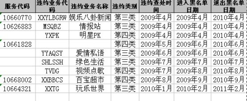 | 20家SP 43項(xiàng)業(yè)務(wù)被下線 雷霆萬鈞多業(yè)務(wù)上黑榜 2010-03-08 |