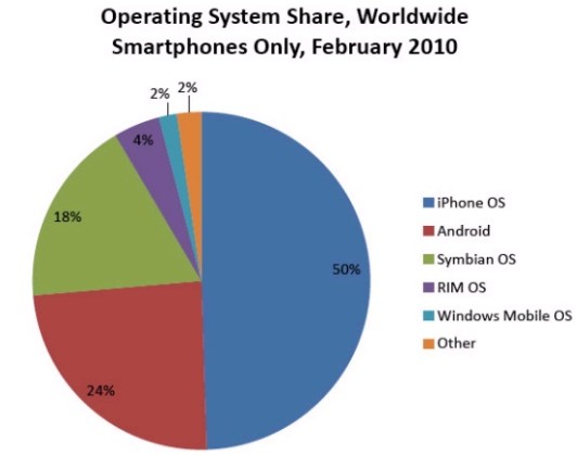 iPhone操作系統(tǒng)占據(jù)智能手機(jī)上網(wǎng)流量半壁江山