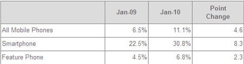 市場(chǎng)調(diào)研機(jī)構(gòu)comScore最新公布的一項(xiàng)數(shù)據(jù)顯示,越來越多的用戶開始用手機(jī)來訪問社交網(wǎng)絡(luò),特別是智能手機(jī)用戶。在2010年一月,有30.8%的智能手機(jī)用戶用手機(jī)訪問了社交網(wǎng)絡(luò)。