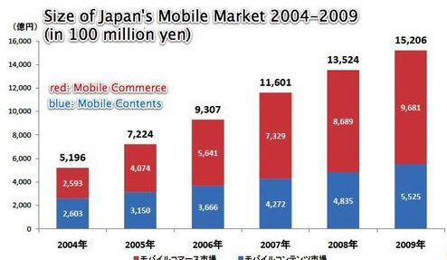 據(jù)國外媒體報(bào)道,日本總務(wù)省上周公布了一份移動(dòng)增值服務(wù)市場(chǎng)調(diào)查報(bào)告。報(bào)告顯示,包括移動(dòng)廣告在內(nèi),日本移動(dòng)增值服務(wù)市場(chǎng)份額去年增長(zhǎng)12%,至1.52萬億日元(折合173億美元)。