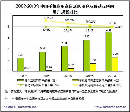 2010年中國手機應用商店用戶增速遠超移動互聯(lián)網(wǎng)