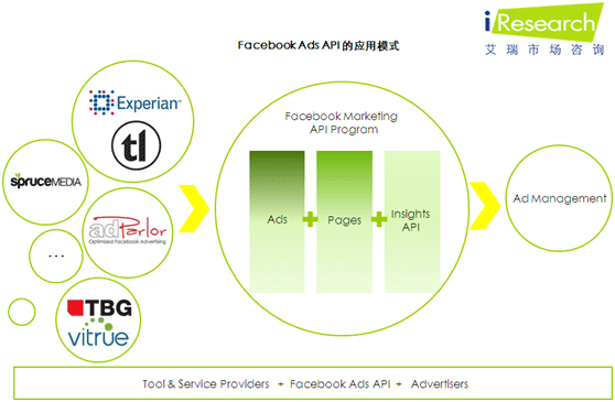 iResearch艾瑞咨詢整理Insidefacebook最新行業(yè)動態(tài)時發(fā)現(xiàn),F(xiàn)acebook于2011年8月1日正式宣布開放廣告接口(Ads API)應用服務,通過在該接口上投放第三方的高效廣告管理工具,廣告主甚至可以保證數(shù)百萬的復雜媒體營銷計劃正常運營并實現(xiàn)廣告管理的高效優(yōu)化。到目前為止,F(xiàn)acebook只為少數(shù)有限的第三方廣告管理工具供應商提供了準入接口,包括Techlightenment(近日被Experian收購)、TBG Digital(與Vitrue達成協(xié)作)、Spruce Media、AdParlor等。此外,F(xiàn)acebook也建立了廣告接口營銷項目計劃,通過收取廣告、頁面、廣告接口洞察等相關(guān)費用來實現(xiàn)盈利。隨著更多的第三方工具與服務供應商進入Ads API市場,越來越多的當?shù)匦⌒蛷V告主也有望享受低成本的廣告優(yōu)化管理服務。