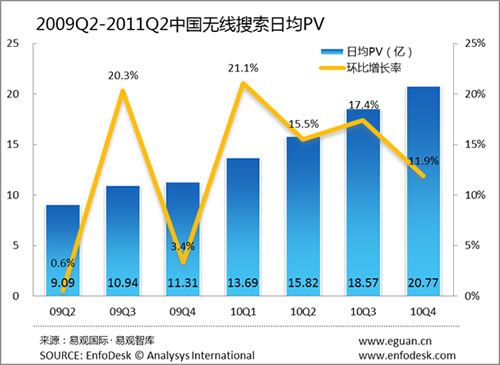 2011年第2季度中國無線搜索日均搜索量達5.58億