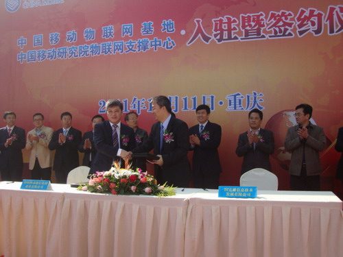 11月11日上午,中國(guó)移動(dòng)物聯(lián)網(wǎng)基地、中國(guó)移動(dòng)研究院物聯(lián)網(wǎng)支撐中心入駐暨簽約儀式在南岸茶園新區(qū)舉行。中國(guó)移動(dòng)重慶公司分別與南岸區(qū)政府、國(guó)富通信息技術(shù)發(fā)展有限公司、新媒農(nóng)信科技有限公司簽訂了戰(zhàn)略合作協(xié)議或產(chǎn)品運(yùn)營(yíng)協(xié)議。這表明以信息化、智能化為標(biāo)志的物聯(lián)生活時(shí)代即將來(lái)臨。