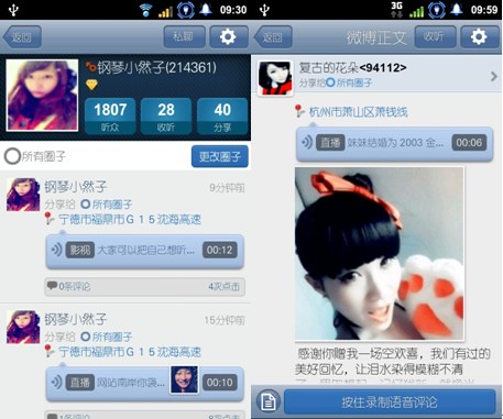 今年9月6日,夢想兄弟正式發(fā)布基于移動互聯(lián)網(wǎng)的社交工具語音微博,這款軟件結(jié)合了微博收聽人物、話題及智能手機特有的地理位置服務(wù)等元素,用戶可以實現(xiàn)直接錄音發(fā)布語音信息的功能,并且不收取任何費用,僅消耗流量。