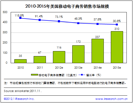 2015年美國移動電子商務市場規(guī)模將達到310億美元
