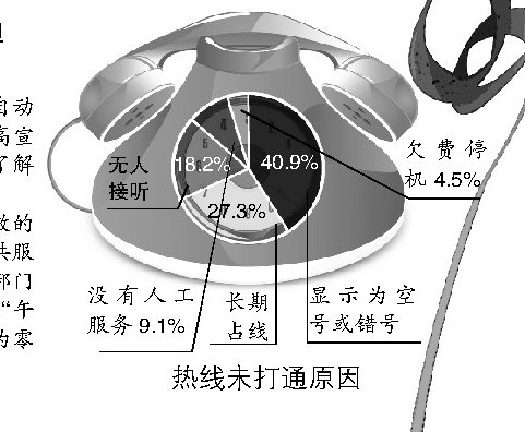 其中超過(guò)四成的熱線顯示為空號(hào)或錯(cuò)號(hào),這是打不通最主要的原因。