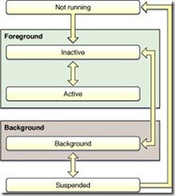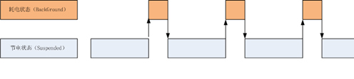 為了節(jié)約電池的電量,智能手機(jī)上的操作系統(tǒng)的一個(gè)基本策略是,盡量減少正在運(yùn)行的程序,這個(gè)道理很簡(jiǎn)單,運(yùn)行的程序越多,需要耗費(fèi)的 CPU 計(jì)算時(shí)間就越多,電量就省不下來(lái)。下面的圖是蘋(píng)果 iOS 設(shè)備應(yīng)用程序調(diào)度狀態(tài)圖,事實(shí)上蘋(píng)果設(shè)備是除了用戶(hù)正在操作的程序,其他打開(kāi)的程序進(jìn)程盡可能都放到“掛起(Suspended)”的狀態(tài)下。在“掛起”的狀態(tài)下面,程序進(jìn)程處在休眠狀態(tài),不耗費(fèi) CPU 計(jì)算能力。當(dāng)用戶(hù)沒(méi)有對(duì)設(shè)備進(jìn)行操作的時(shí)候,整個(gè)系統(tǒng)處在休眠的低電狀態(tài)。(這里進(jìn)程的意思是:程序運(yùn)行實(shí)例)