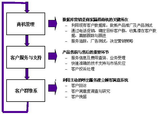 。。呼叫中心能夠幫助企業(yè)直銷,挖掘和驗證商機,同時通過分銷商管理,傳遞商機,提供最快的支持,同時在公關(guān)活動中,呼叫中心可以用于招募參加者,或通過電話呼入支持客戶的活動,客戶歷史記錄的建立,以及客戶資料數(shù)據(jù)庫的完備,將幫助企業(yè)開拓數(shù)據(jù)營銷市場,通過呼出和呼入方式,建立用戶數(shù)據(jù)庫,挖掘潛在商機。 可見,利用呼叫中心的利潤循環(huán)是執(zhí)行客戶關(guān)系管理的核心基礎(chǔ)。如下圖所示: