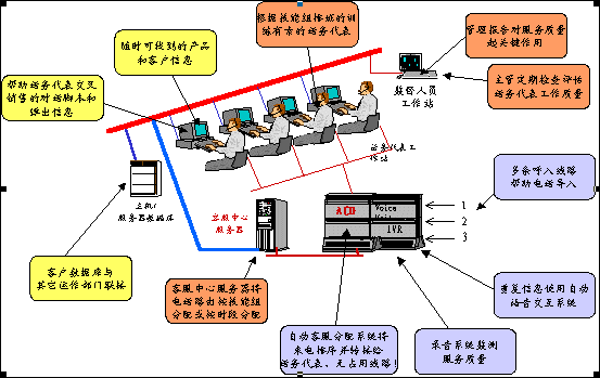 。。呼叫中心可以這樣定義,它是充分利用現(xiàn)代通訊與計算機技術,如IVR(交互式語音應答系統(tǒng))、ACD(自動呼叫分配系統(tǒng))等等,可以自動地處理大量各種不同的電話呼入和呼出業(yè)務和服務的運營操作場所。