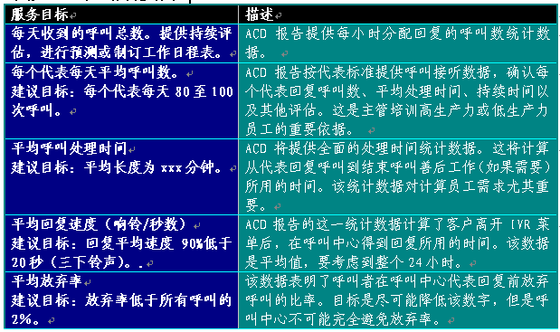 4) 服務(wù)水平問題的回答 每個工作日結(jié)束的時候,報告將通知中心是否達(dá)到預(yù)先設(shè)定的服務(wù)水平目標(biāo)。