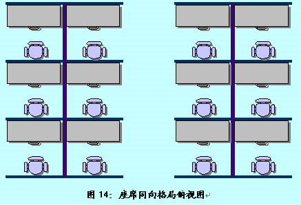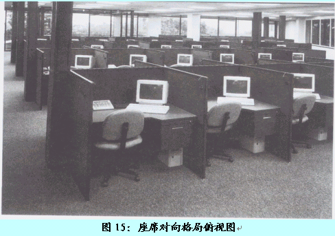 。。在此格局中,客服代表采用兩兩面面相對的方式進行辦公,但位于同一側(cè)的客服代表是相同面向的。
