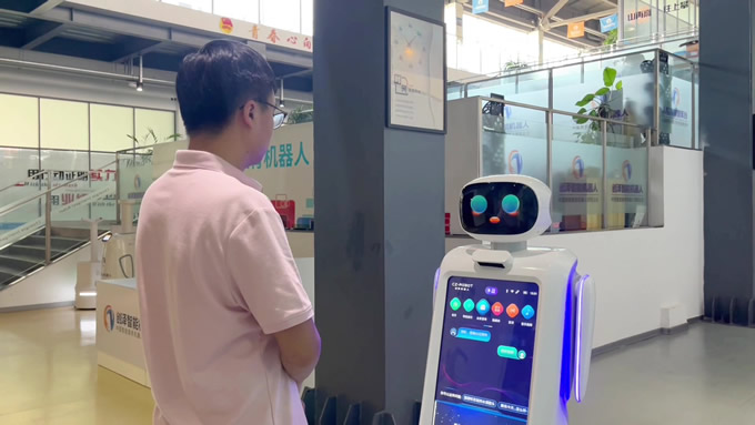 創(chuàng)澤智能消毒機器人和智能大屏機器人等多款機器人亮相蘭洽會,彰顯了創(chuàng)澤AI技術實力與場景深耕能力