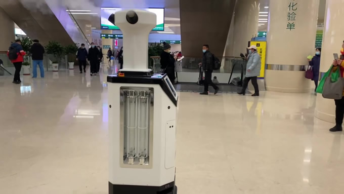 消毒機器人什么場合作用大,大型公共場所使用消毒機器人進行消毒