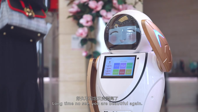 會(huì)說(shuō)英文的迎賓機(jī)器人