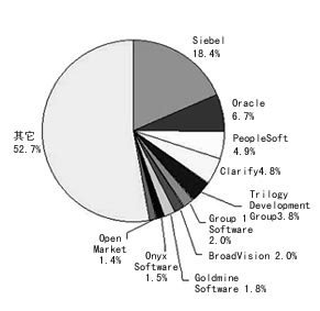 就CRM的廠商來(lái)講,市場(chǎng)份額比較分散,而且競(jìng)爭(zhēng)態(tài)勢(shì)變化很快。實(shí)際上,除了前五名的廠商外,其它廠商的市場(chǎng)份額不超過(guò)2%,其中大多數(shù)CRM廠商是在過(guò)去18個(gè)月才推出CRM產(chǎn)品。