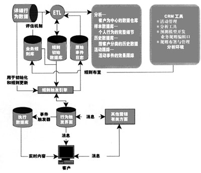 關(guān)系數(shù)據(jù)庫系統(tǒng)有三種主要數(shù)據(jù):典型客戶案例的詳細(xì)數(shù)據(jù)、對所有客戶的總結(jié)性歷史數(shù)據(jù)以及具體活動(dòng)的數(shù)據(jù)。分析數(shù)據(jù)庫提供輸入數(shù)據(jù),從而得到對客戶的認(rèn)識,而滿足ETL處理的業(yè)務(wù)規(guī)則庫為分析數(shù)據(jù)庫提供派生屬性。這個(gè)過程將保持離線分析和實(shí)時(shí)事件觸發(fā)規(guī)則之間的同步,在動(dòng)態(tài)建立表格的過程中處理初始化完成后的派生屬性相加,并對相應(yīng)的元數(shù)據(jù)進(jìn)行更新,這些處理都是自動(dòng)實(shí)現(xiàn)的。